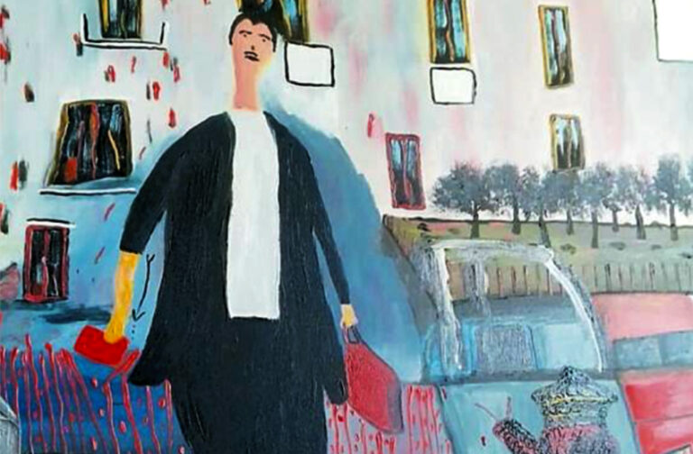 「コーザ・ノストラ」メンバーから司法協力者となったガスパレ・ムートロは、現在画家としても活動していて、マフィア界のピカソ、などとも呼ばれています。赤い手帳をモチーフにした絵も多く書いていて、この絵はそのうちの一枚です。ムートロは、素朴ですが味のあるおもしろい絵を多く描いています。写真はilsuperuovo.itより引用。